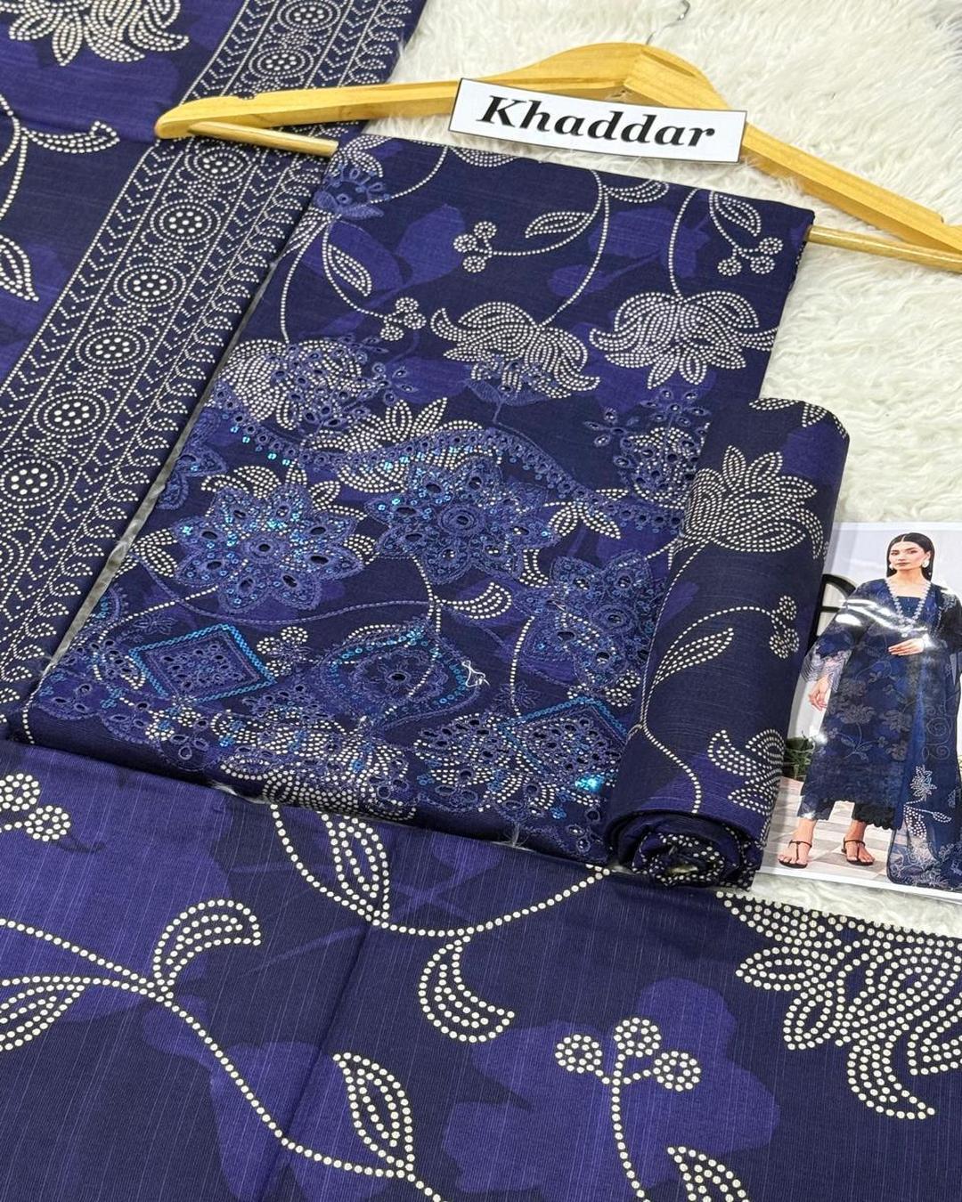 Fabric & Season: Khaddar 3-piece unstitched suit, ideal for winter wear.