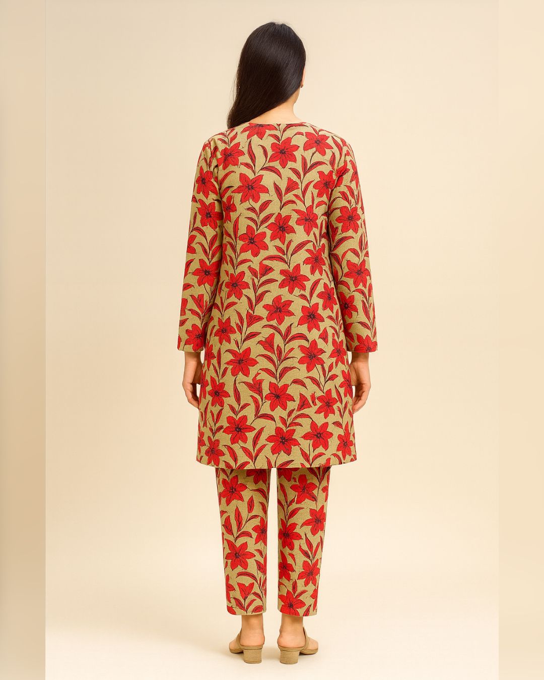 - Trouser: Khaddar digital print trouser, coordinated with the shirt for a complete 2-piece look.